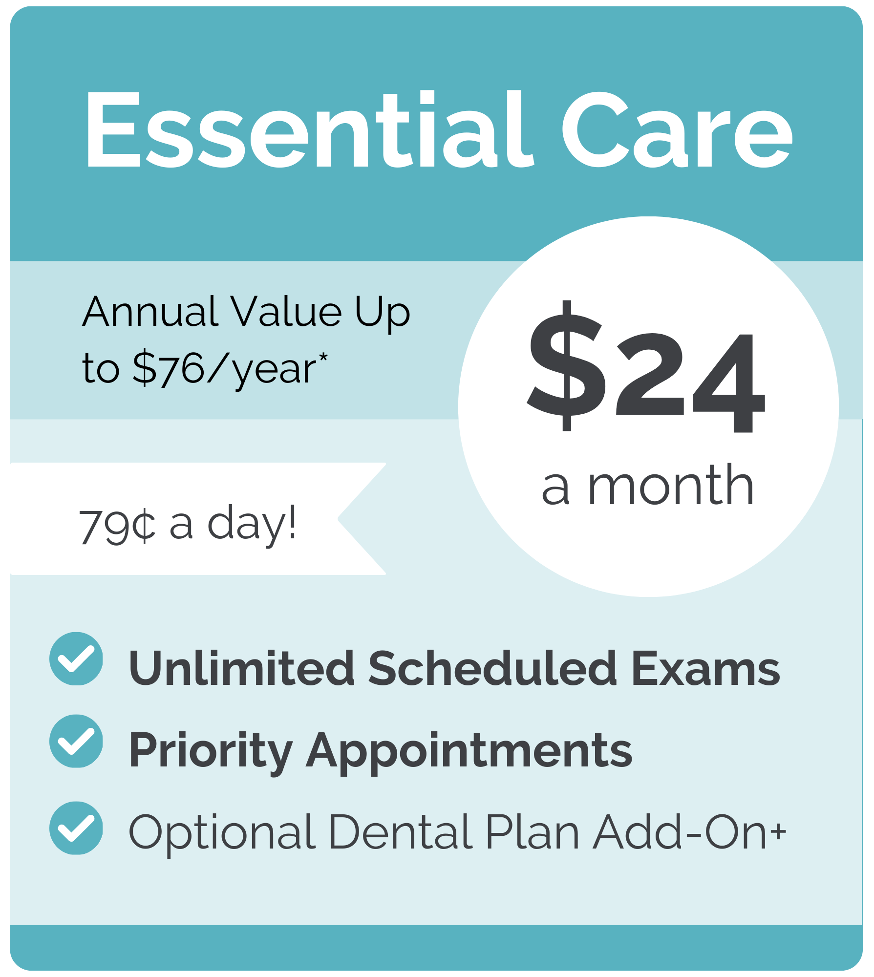 With unlimited exams and priority appointments, you can come in anytime.